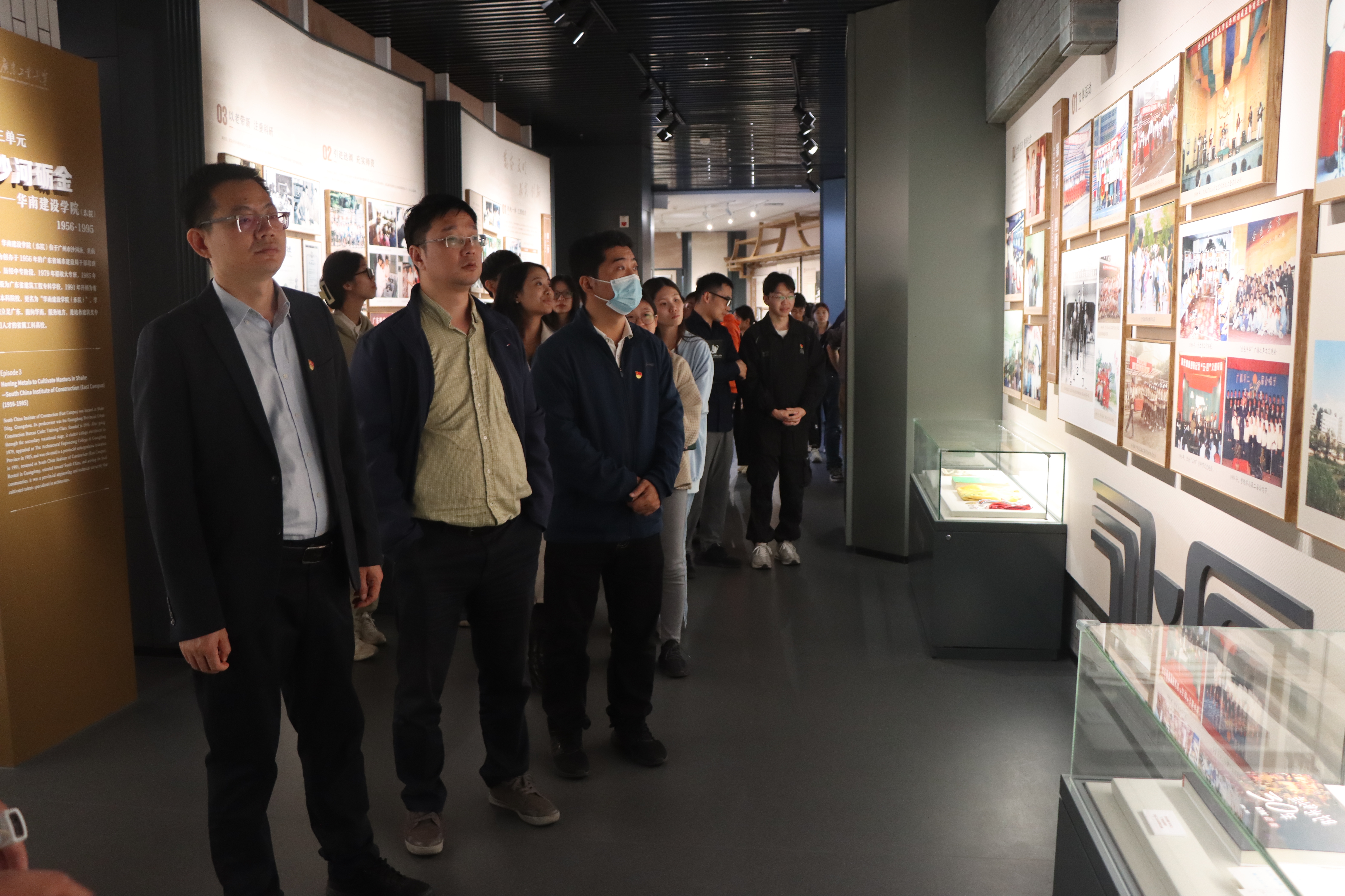 会议开始之前,学院党委组织党支部书记、团学骨干和本期发展的预备党员一行30余人前往校史馆开展“知史爱校,学史荣校”的参观学习。在讲解员的带领下,师生依次走进序厅,穿过历史篇,跨进发展篇,阅览成果篇,展望未来篇,回首广东工业大学的风雨历程,感悟学校“扩规模”“拓空间”“上水平”“攀高峰”四次历史性跨越发展的志气、勇气和底气,坚定走高质量内涵式发展道路的信心,领悟一代代广工人接续奋斗、砥砺前行的精神,传承红色基因,赓续红色血脉。