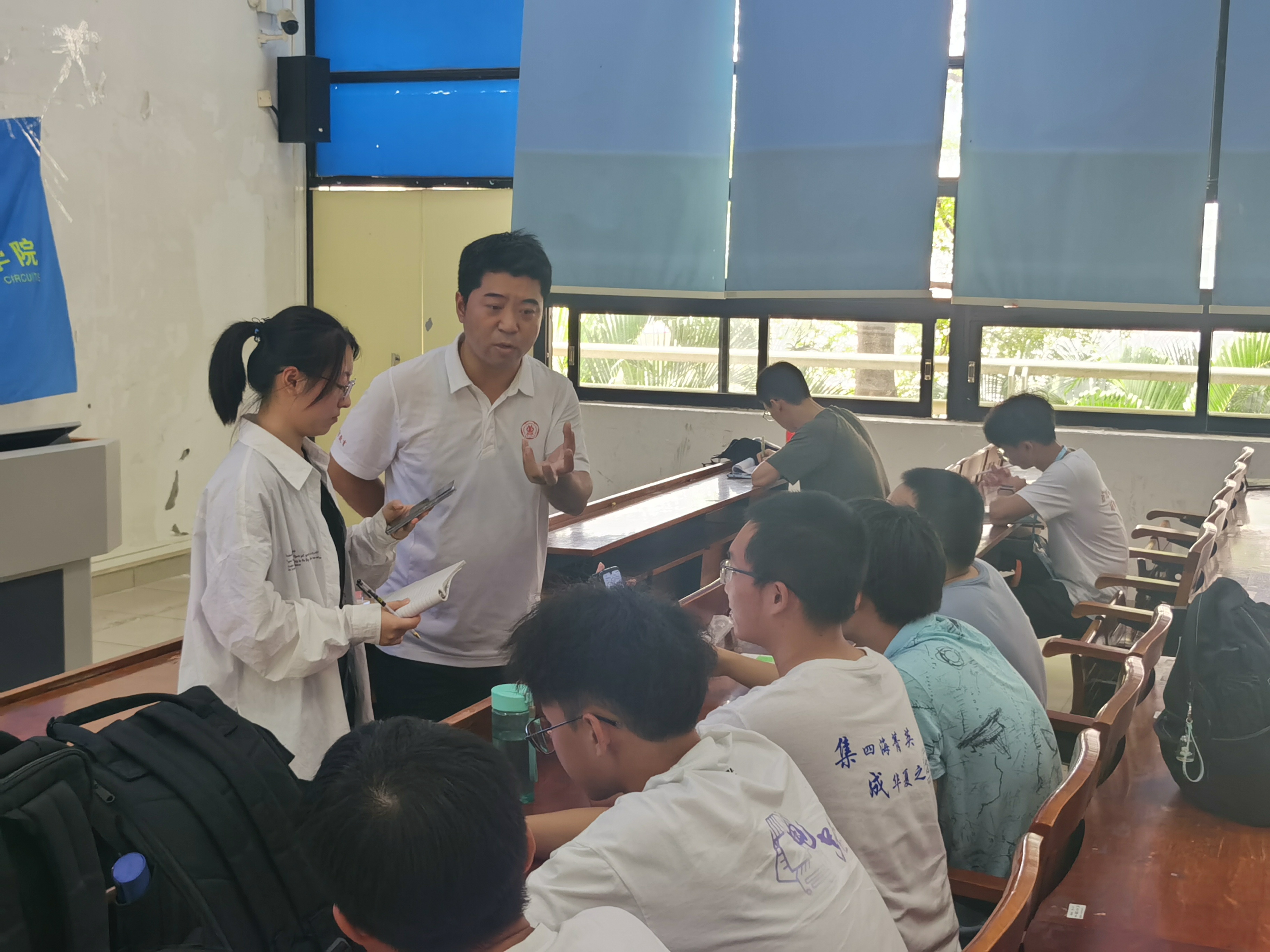 讨论期间,石宇杰老师到各个组内进行耐心细致的指导。先是提建议,引导思考方向,询问讨论学习结果,分别从时代背景、国家急需、青年责任、理论与实践等方向进行指导,要求各小组观点要精炼集中,论证有力。