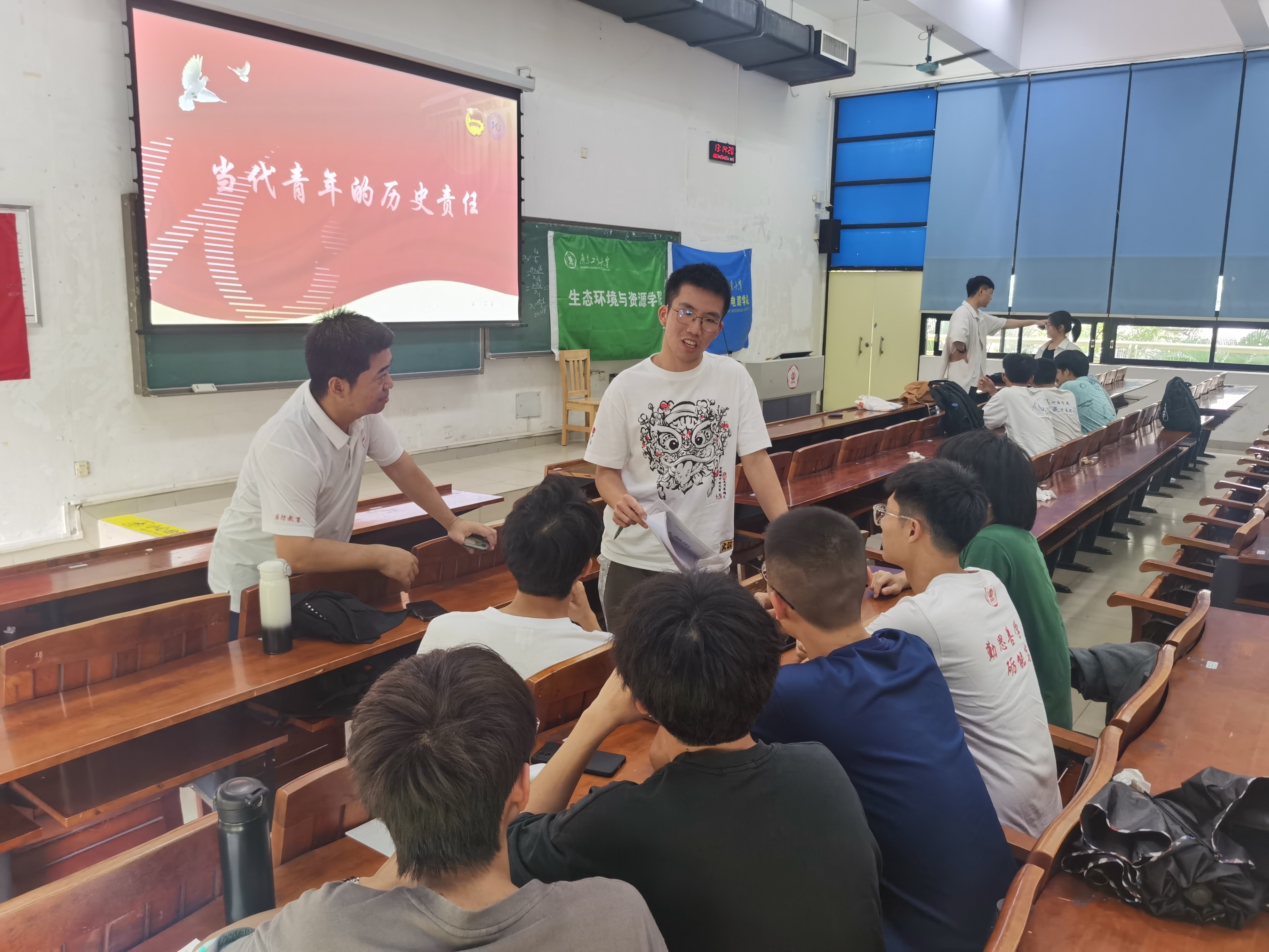 及生态环境与资源学院的入党积极分子作《当代青年的历史责任》的专题分享。分享结束后,入党积极分子分小组进行研讨并汇报。