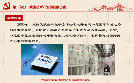 刘老师首先介绍了我国企业机构在芯片进口方面被管制的困境,包括当前我国芯片主要来源是贸易进口,每年需要进口数万亿元的芯片,这强烈依赖于全球供应链的安全。随后,回顾了我国芯片产业的发展史,包括1956年制定实施的《1956-1967科学技术发展远景规划纲要》中明确提出要发展集成电路,在无锡微电子工程、908工程、909工程的带动下,涌现出许多优秀的芯片企业,例如华虹电子、中芯国际等。