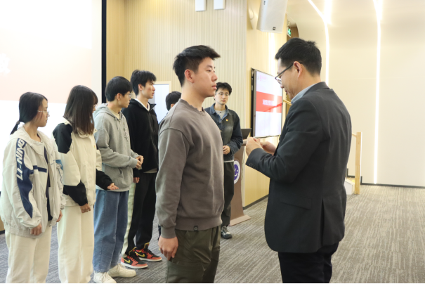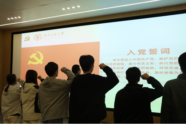 举行了本期新发展党员的入党仪式。沈彬老师为本次新发展的党员佩戴党徽,并带领党员们在党旗下宣誓。