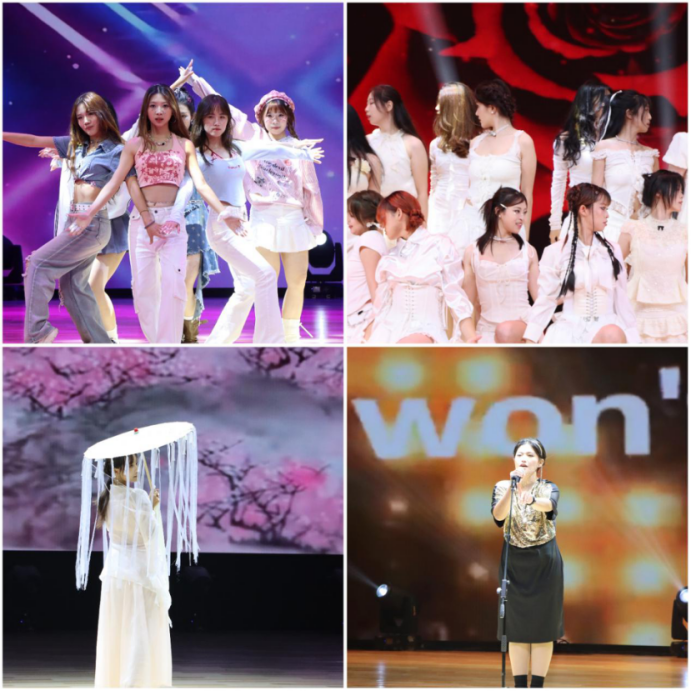 月华如水,歌声悠扬,第二篇章“灵韵开新章”在歌曲《Free Loop》中缓缓开启,歌声激发着观众的情感共鸣,鼓励人们勇敢地去追寻自己的内心所向,摆脱现实的困境和束缚;舞蹈《Hey!Hey!》在欢快的节奏带领同学们尽情领略校园时光的青春洋溢与朝气蓬勃;《Stuck In The Middle》唱响了成长的道路上置身两难境地的迷茫和纠结,也启示着同学们勇于走出舒适区,寻找应对困难的出路;说唱《玛瑙》用鼓舞人心的词句辅以充满张力的旋律诉说着青年学子一往无前、无所畏惧的精神风貌;舞蹈《Shooting Star》紧跟音乐的节奏,每一次转身、跳跃都精准有度、张弛有力,瞬间点燃了现场的气氛。