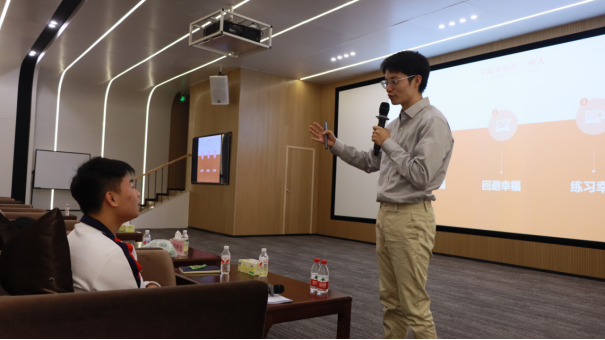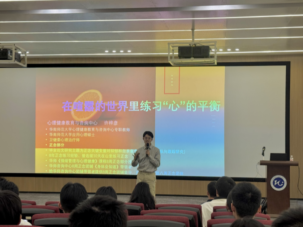 在交流活动环节,许梓彦老师与听众进行了深入的交流与互动,耐心解答了他们关于正念练习的各种疑问,并给出了实用的建议。许老师倡导同学们日常通过正念练习,以更有力量、更加平和的心态来应对各种压力。