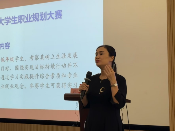 范梦老师则以“生涯发展与个人简历结构化表达”为主题,着重向高年级学生解读了职规赛今年的新变化,讲授就业赛道的备赛重点,从行业发展趋势及校招解密、简历制作技巧详解、面试秘籍拆解和职规赛备赛四个方面指导同学们积极科学备赛,鼓励同学们提升个人竞争力,在专业能力、综合能力等方面提高自己。