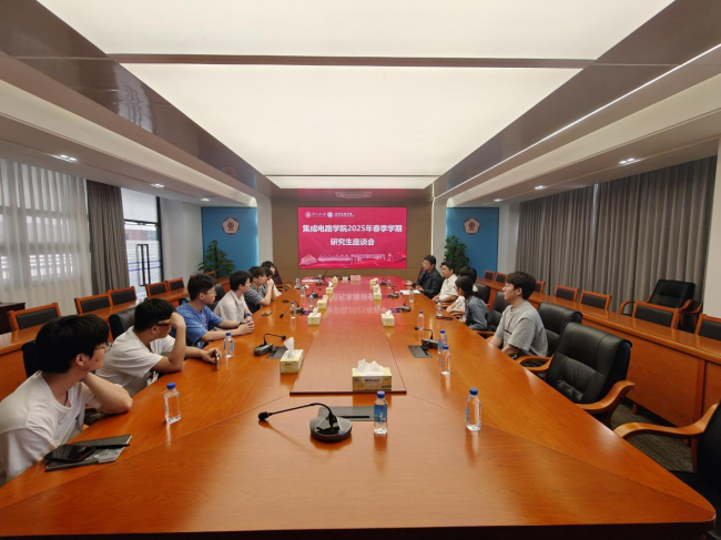 在研究生座谈会上,教学副院长蔡述庭,院党委副书记石宇杰,研究生导师楚春双、辅导员李秉寰,听取了9名来自不同科研团队的研究生代表对课程体系、科研指导及学风建设的建议。学生代表从科研协同、课程衔接、职业发展等多维度建言,呼吁强化跨学科资源整合、加大学术共同体支持力度;学院领导则立足“大格局育人”视角,强调以“精准滴灌”破解个性化培养难题。石宇杰从思想引领角度强调:"要跳出'唯论文'的焦虑,把个人成长嵌入国家集成电路产业坐标系,在攻克关键技术中实现价值升华。"楚春双导师则结合自身留学经历,分享"科研马拉松"的时间管理经验,鼓励学生"既要保持前沿追踪的敏锐度,也要培养十年磨一剑的战略定力"。