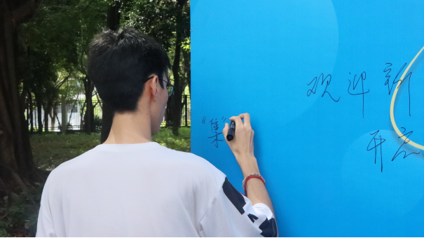 宿舍楼下,伴随着新生的欢声笑语,院的芯光起航板成为一道亮丽的风景线。学院特地在迎新志愿点设置了两个打卡点位,同学们纷纷与家长在此处留下进入大学的第一张合影,定格每一张青春洋溢的面孔、每一个美好灿烂的微笑,在这里见证与学院的初见,把首次步入大学校园的喜悦分享给身边最亲近的人。