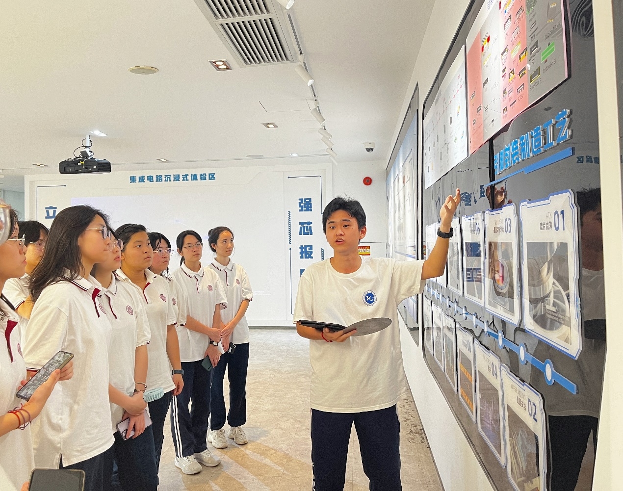 参观。学院“芯火”宣讲团带领师生们参观了近期获批的广东省科普教育基地——集成电路专业认知体验馆,从集成电路的发展历史、制造、封装测试、发展前景等方面为他们进行了详细的科普讲解,同学们对集成电路有了初步的认识。