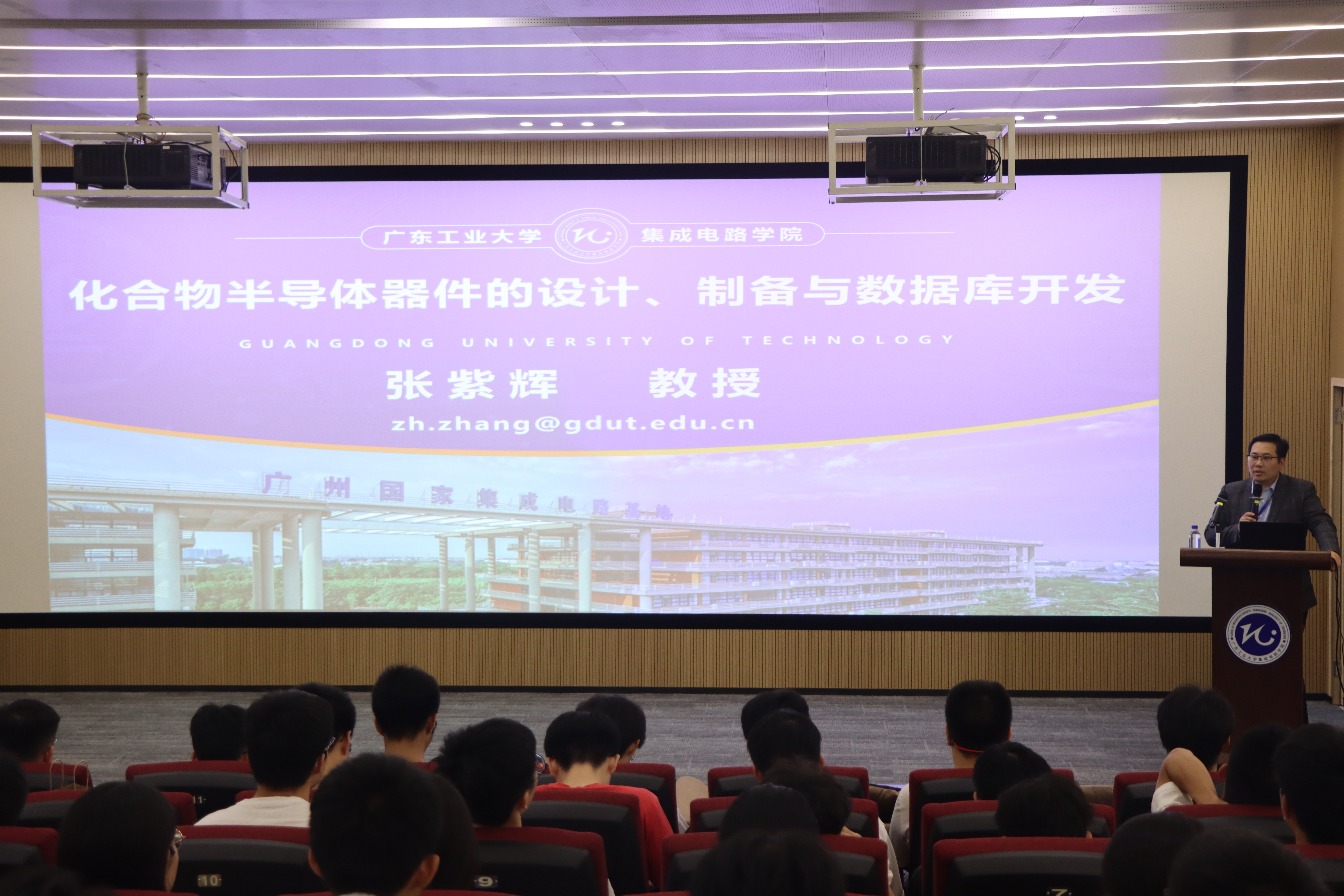 在讲座中,张紫辉教授通过讲述半导体工艺的提参、建模与仿真、TCAD仿真介绍、GaN器件物理建模、芯片制备与表征等方面的知识,让同学们获取到了更多化合物半导体器件的设计、制备与数据库开发方面的知识。张紫辉教授用通俗易懂的语言和实际的应用例子阐述了半导体器件仿真的当下难点、建模的过程以及仿真建模工具的应用,给同学们打开了一扇崭新的知识大门,让在座的师生听得津津有味,受益匪浅。