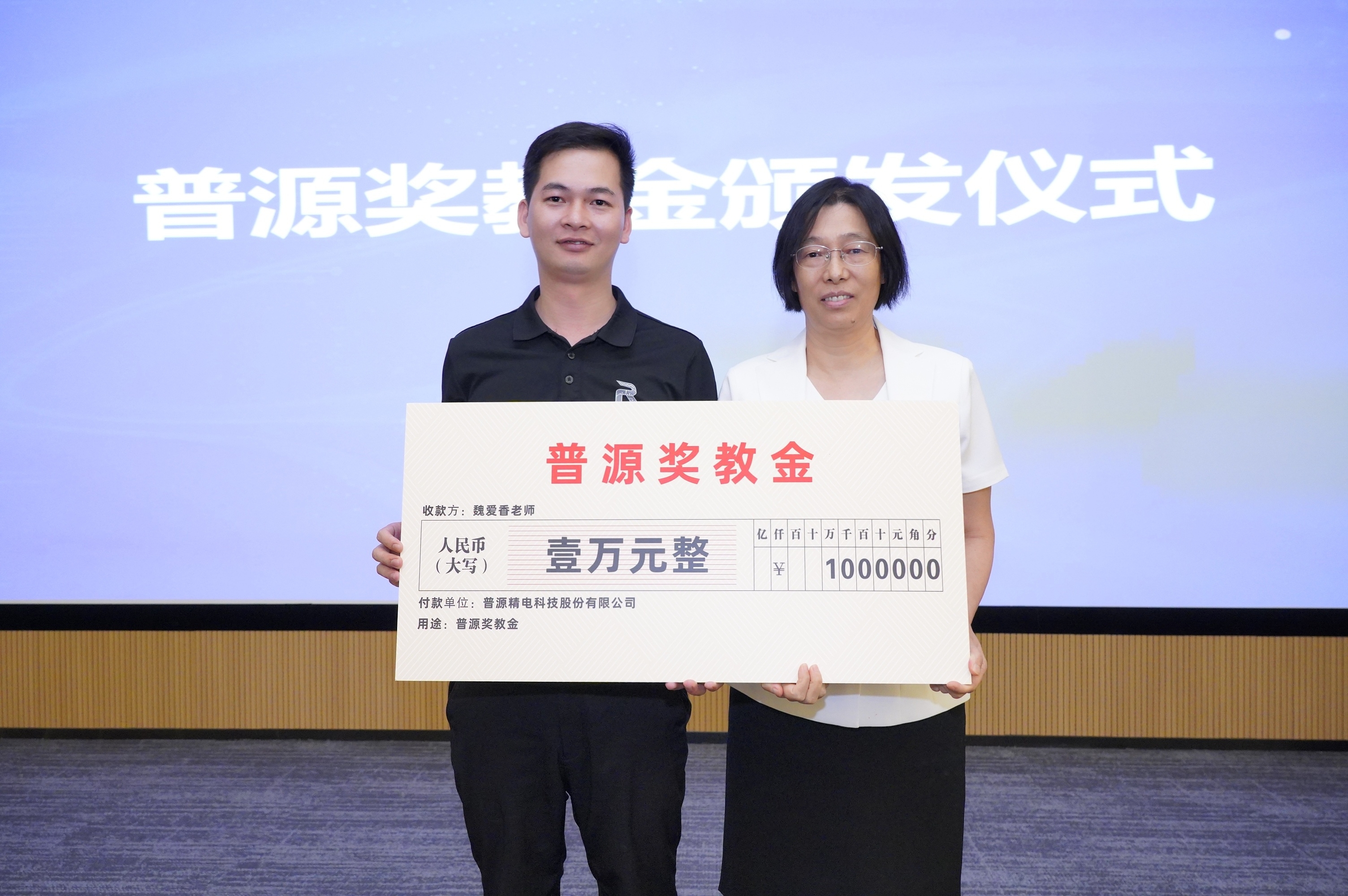 第一届荣退仪式,林冬育经理为魏爱香老师颁发了学院首届普源奖教金。魏爱香老师在职期间始终坚持教书育人、爱岗敬业的信仰,她认为大学是认识世界、认识人生的阶段,希望学生们诚心做人、认真做事。