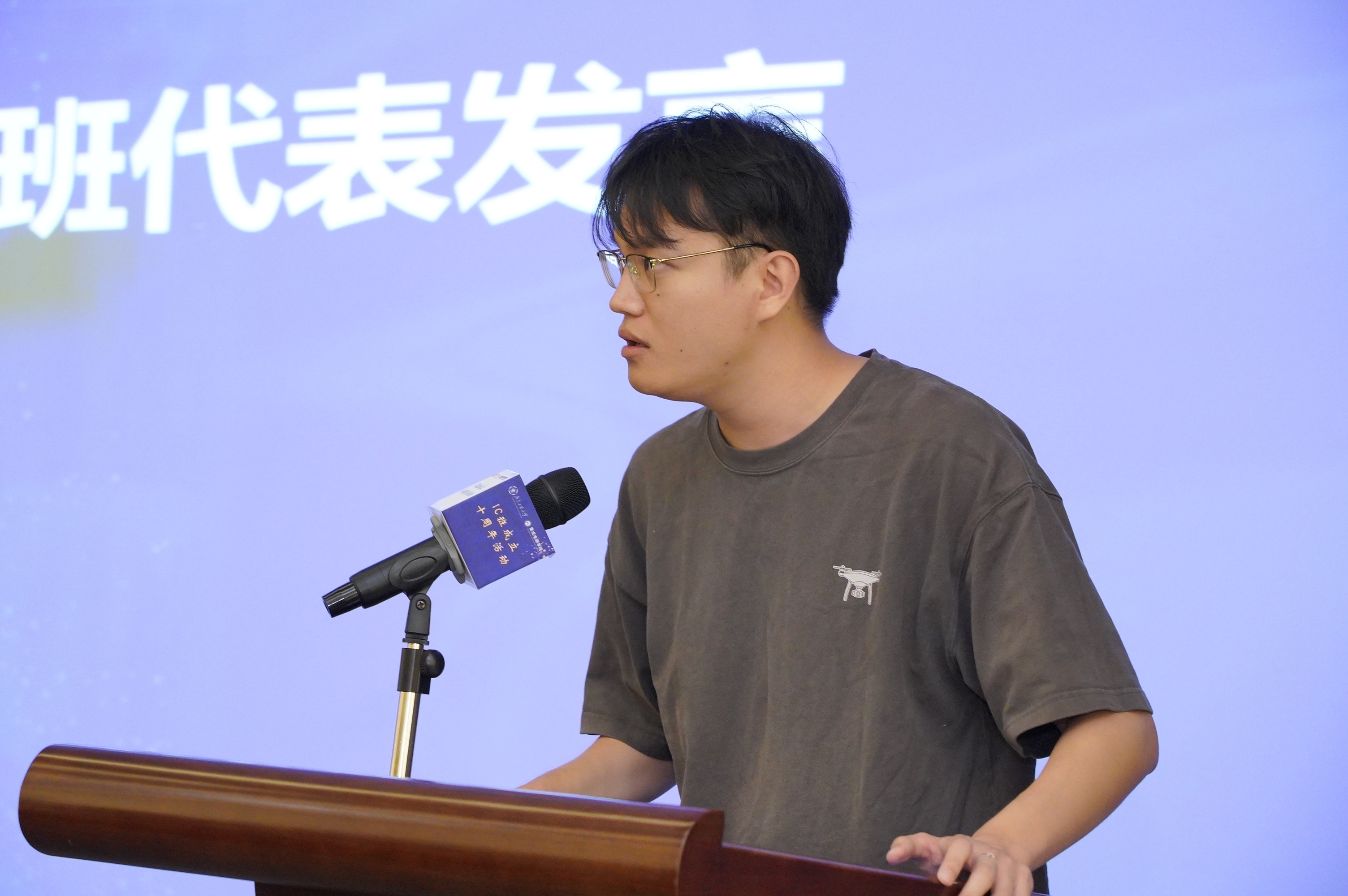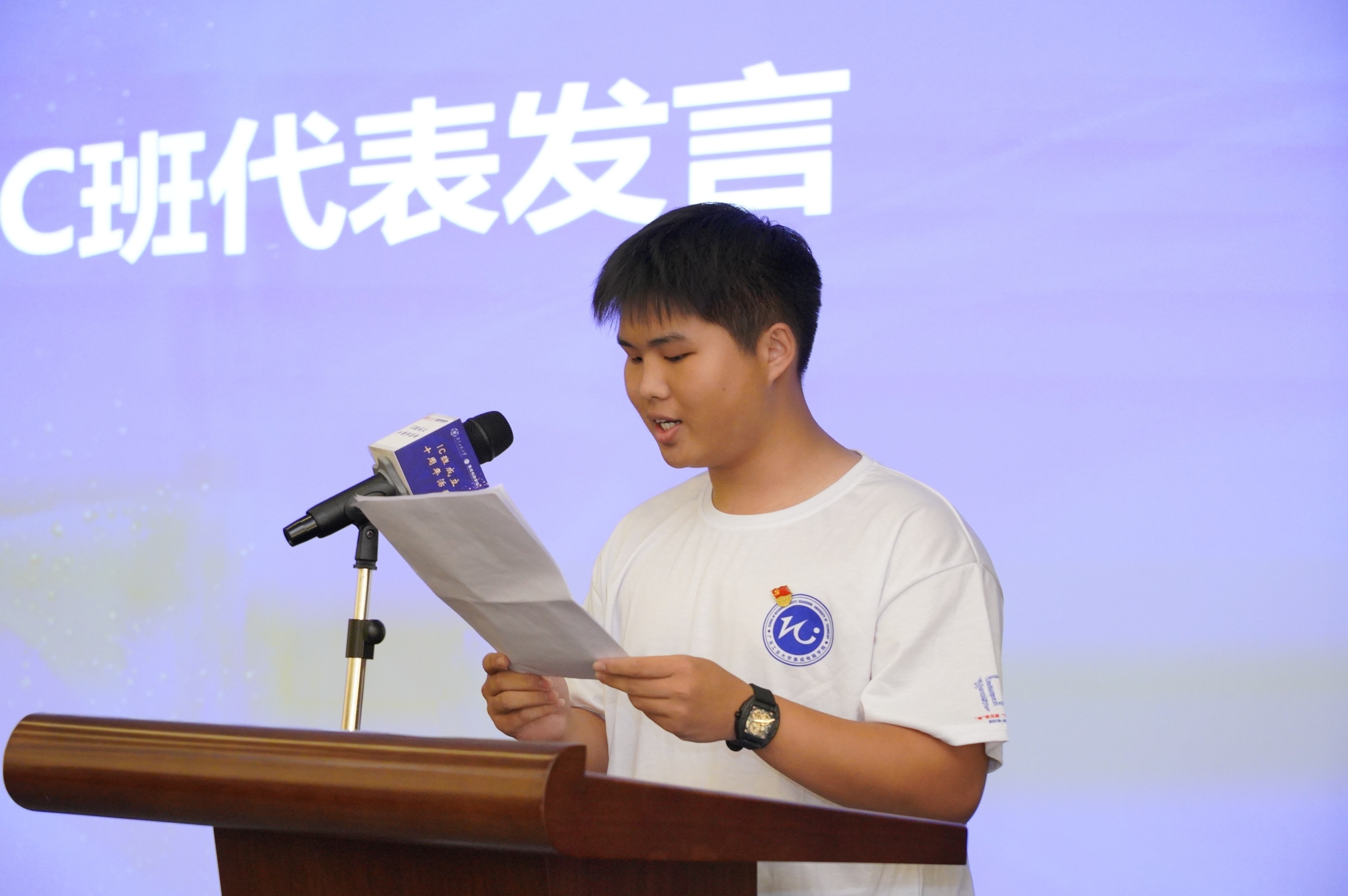 2017届IC班成员毛欣翔代表校友发言,他以“视野”为关键词,结合亲身经历的重大选择,向大家分享了宝贵的人生经验,激励学弟学妹不断拓宽自己的视野,提升自己的认知和能力。2020级IC班成员陈聪玮代表在校生发言,他回望在IC班的一年时光,感谢IC班包容共进的学术氛围,并发出了“吾辈必将助力时代发展,担当民族大任”的铮铮誓言。
