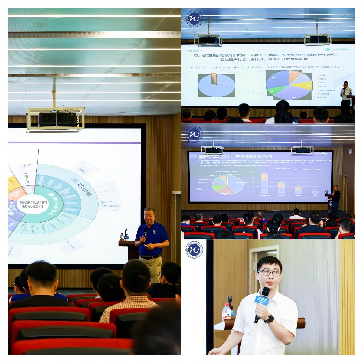 院长熊晓明教授,粤芯半导体技术股份有限公司总工程师鲍明轩,广州润芯信息技术有限公司总工程师王日炎,广汽埃安新能源汽车有限公司软件工程部副部长罗宇亮受邀作主题报告。