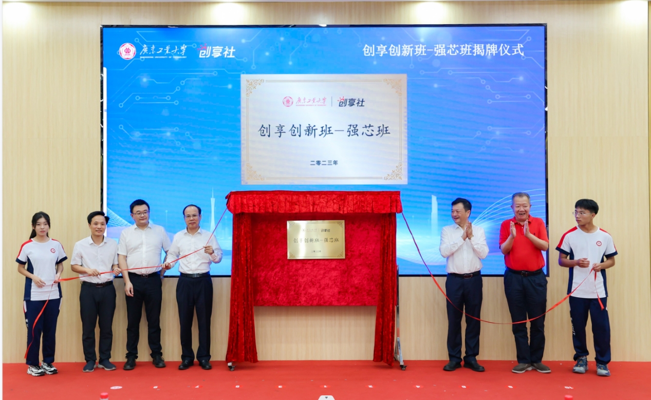 仪式上,还举行了创享创新班-强芯班授旗仪式与导师聘书颁发仪式,标志着学校首个创享创新班正式入驻工大创谷。仪式结束后,与会领导、企业嘉宾共同参观了创享创新班-强芯班工作室。