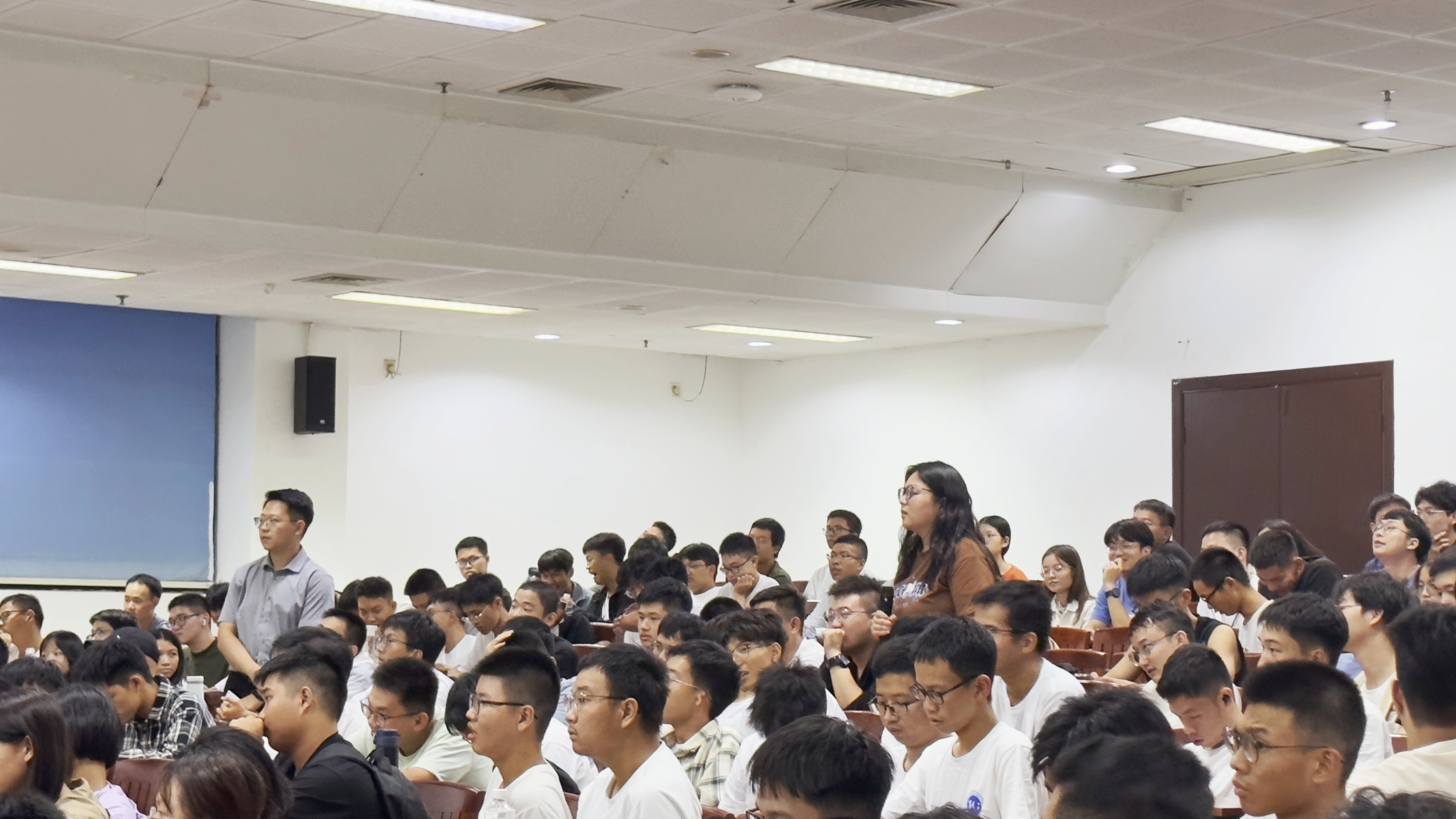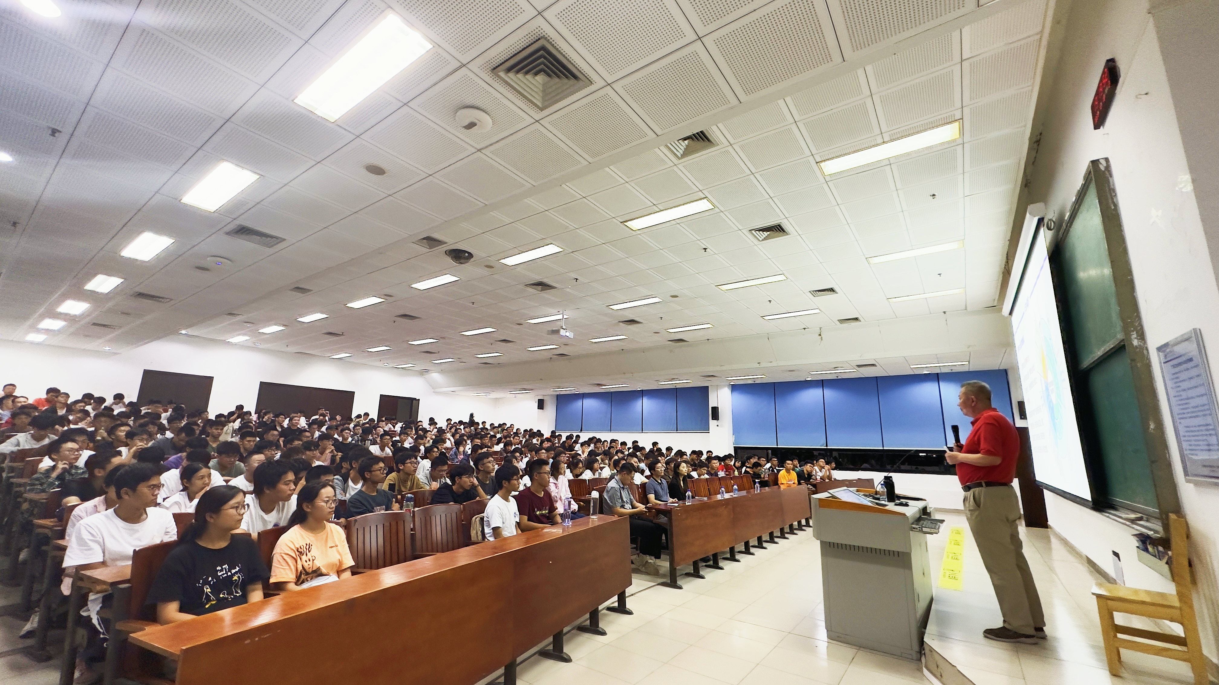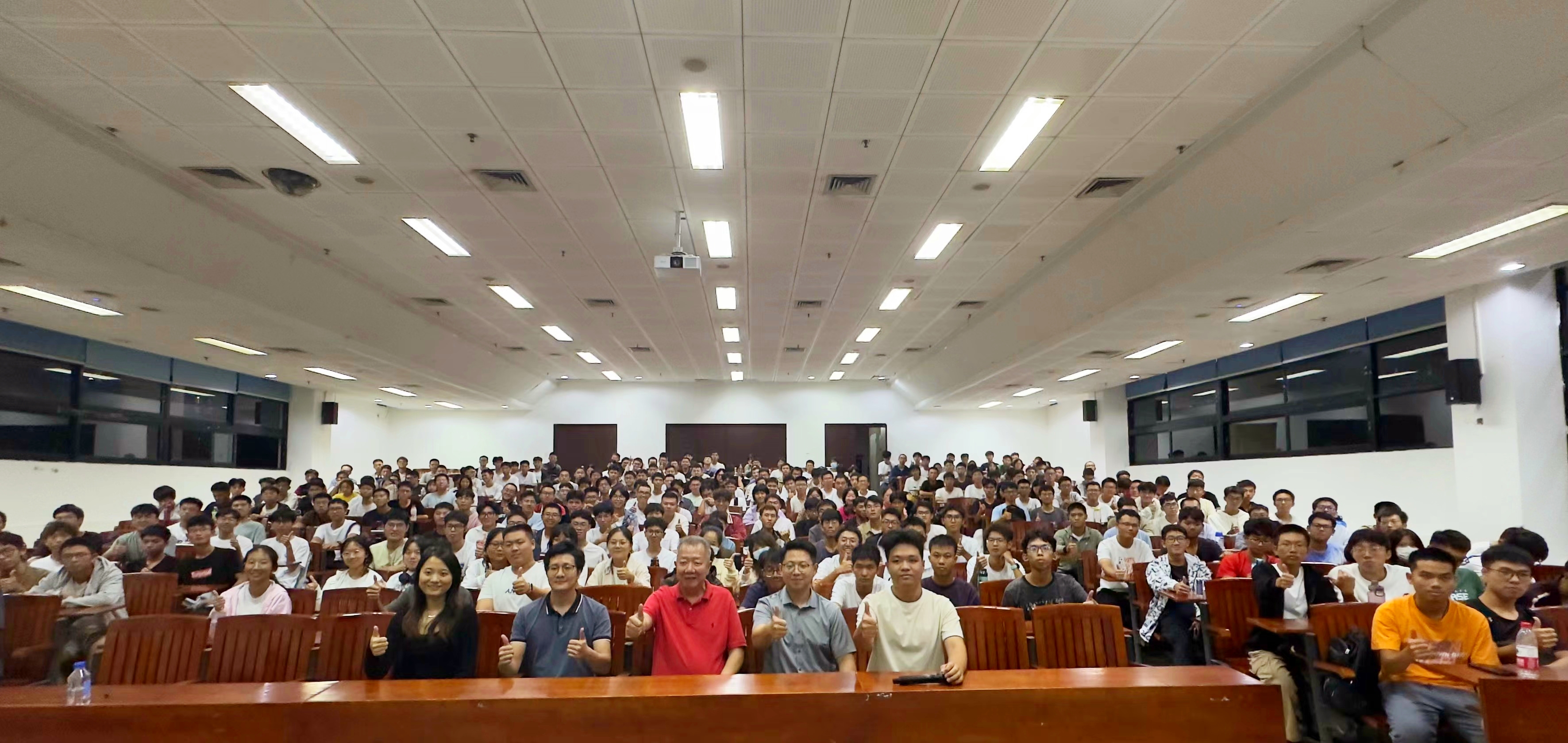 2023级本科新生和研究生共计300余人齐聚五号大教室,学院团委书记戎明杰老师、2023级辅导员蒋佳琪老师参加了本次活动。本次讲座由研究生辅导员李秉寰老师主持。