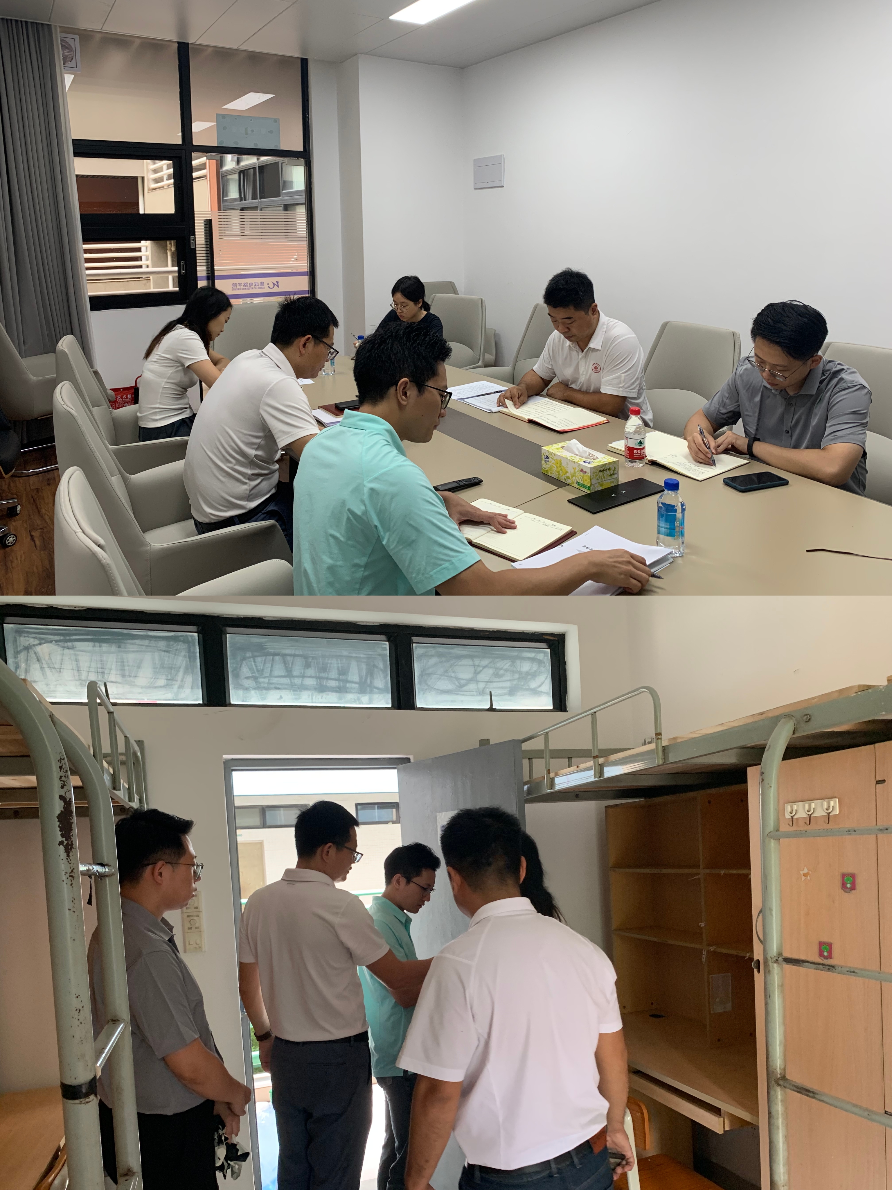 召开迎新工作碰头会,沈彬书记、石宇杰副书记以及学院学工全部老师出席会议。会上蒋佳琪老师汇报了目前迎新工作进展,以及进一步的工作安排。沈彬书记对现有工作表示了肯定,并强调要做好台风等极端天气下的迎新工作方案与应急预案,以新生、迎新使者、新生学长、志愿者们的安全为第一要务,同时保障迎新工作有序、高效开展。随后,沈彬书记、石宇杰副书记与各年级辅导员共同视察学生宿舍,并对学生宿舍社区文化建设提出指导性意见。