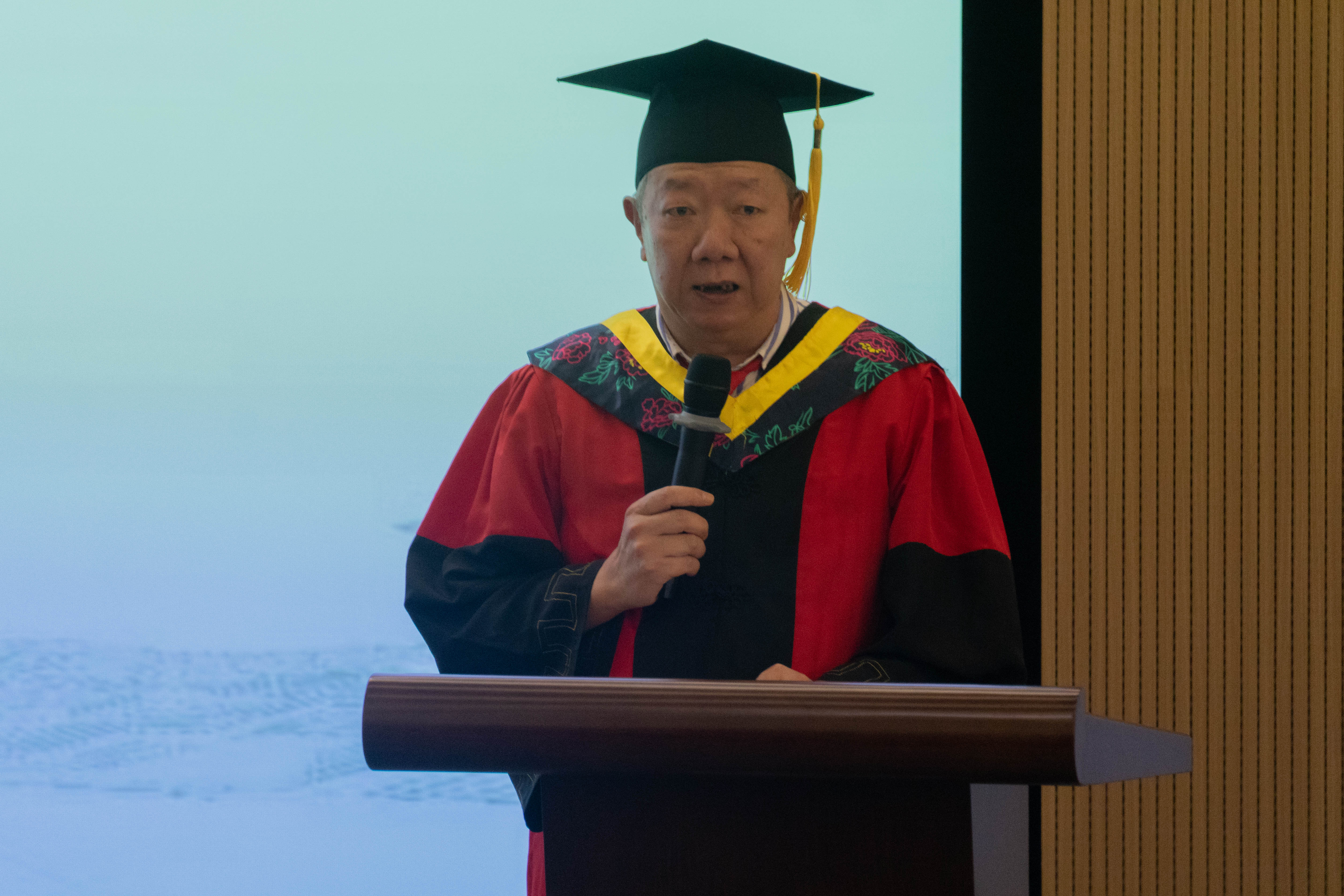 在庄严的国歌声中,典礼拉开帷幕。院长熊晓明对全体毕业生圆满完成学业和顺利获得学位表示真挚的祝贺,并向毕业生提出了三点期望:第一,不要放弃对知识的渴望与获取;第二,格局放大,格局有多大,以后的路就有多宽;第三,珍惜大学情谊,当有光荣感的校友。熊晓明表示,他希望2023届全体毕业生在今后的人生道路上用这三点时时鞭策自己奋勇前行。