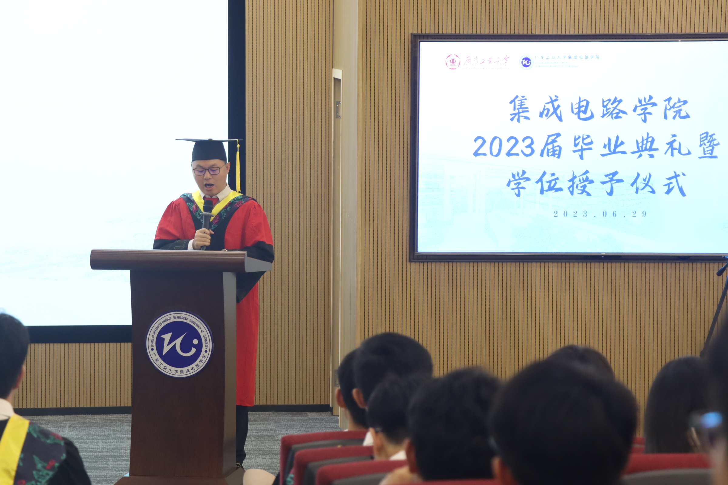 宣誓结束,学院为广东工业大学2023届优秀毕业生、角球比分007