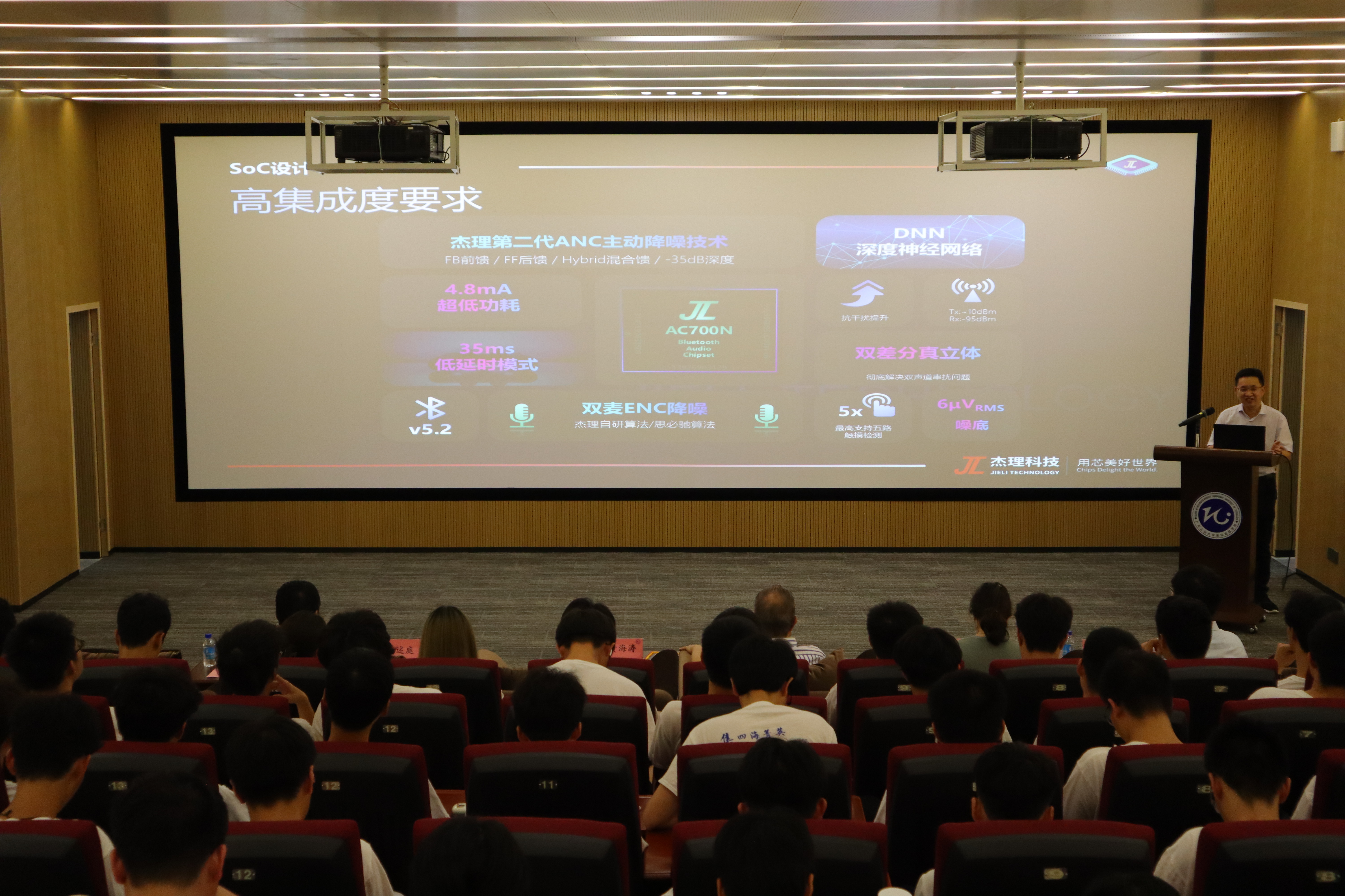 学生介绍了珠海市杰理科技股份有限公司与当前广东集成电路行业的基本情况。他举例介绍了其公司主打蓝牙芯片产品的特点,并通过该例子阐述了企业对集成电路人才的专业知识和实践能力方面的要求。他鼓励同学们刻苦学习,用所学的知识破解芯片领域的难题。