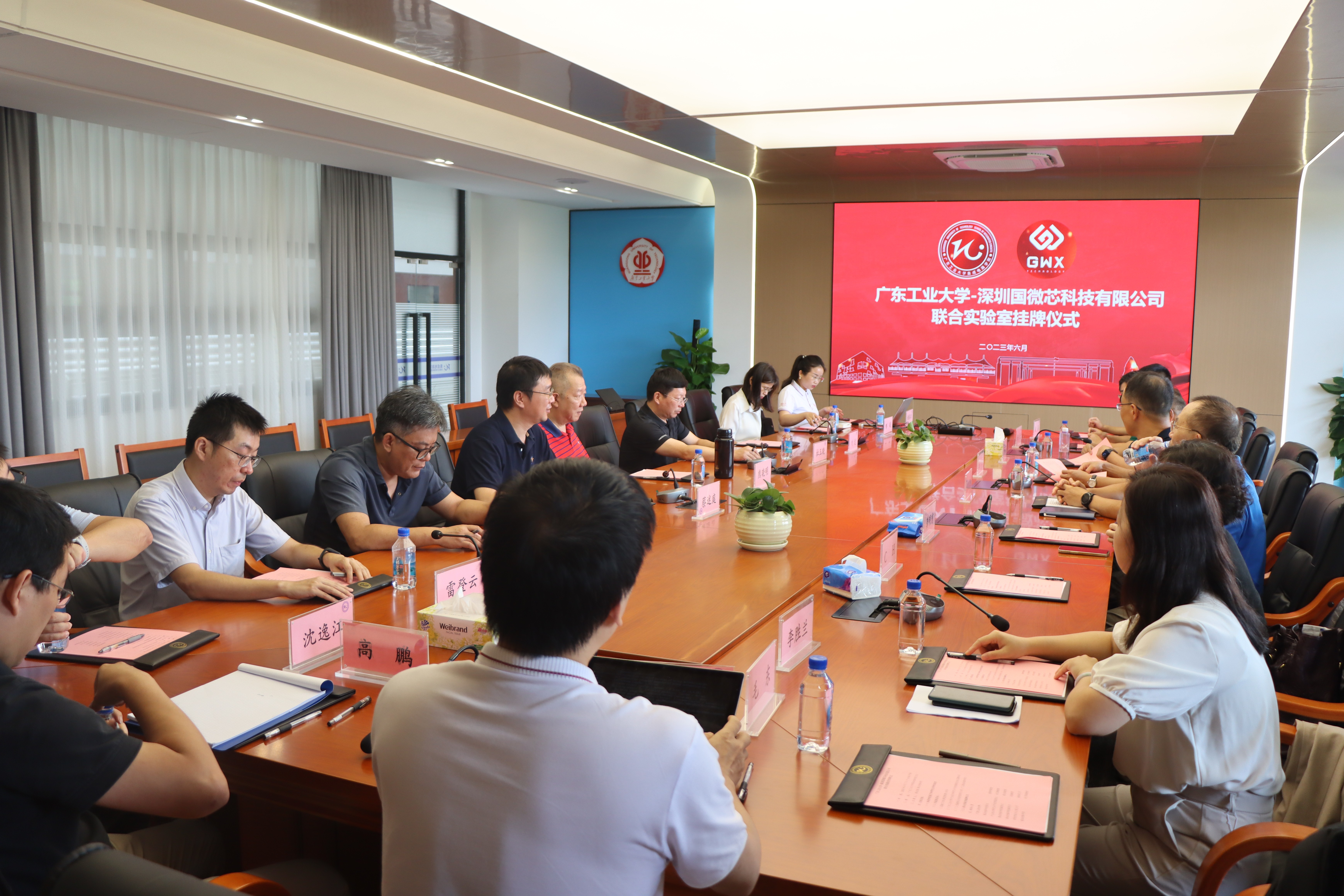 其后,在双方与会领导的共同见证下,企业代表黄国勇、龚明甫和校方代表熊晓明、杜玉晓共同为校企联合实验室揭牌,标志着广东工业大学与深圳国微芯科技有限公司正式建立合作关系,校企双方未来在技术合作、人才培养、学术交流、成果转化、就业服务等方面将展开深度合作,为我校 “1+2+3”攀撑计划学科提升工程发展增砖添瓦,推进学校高质量发展。