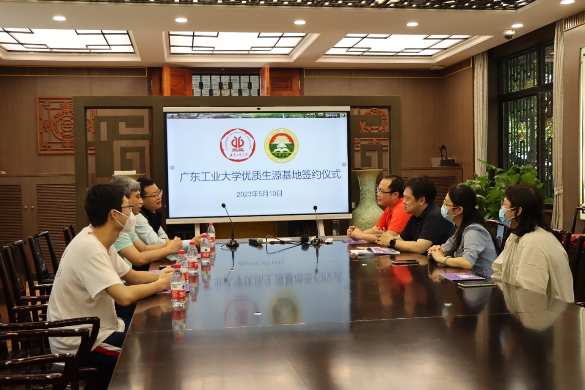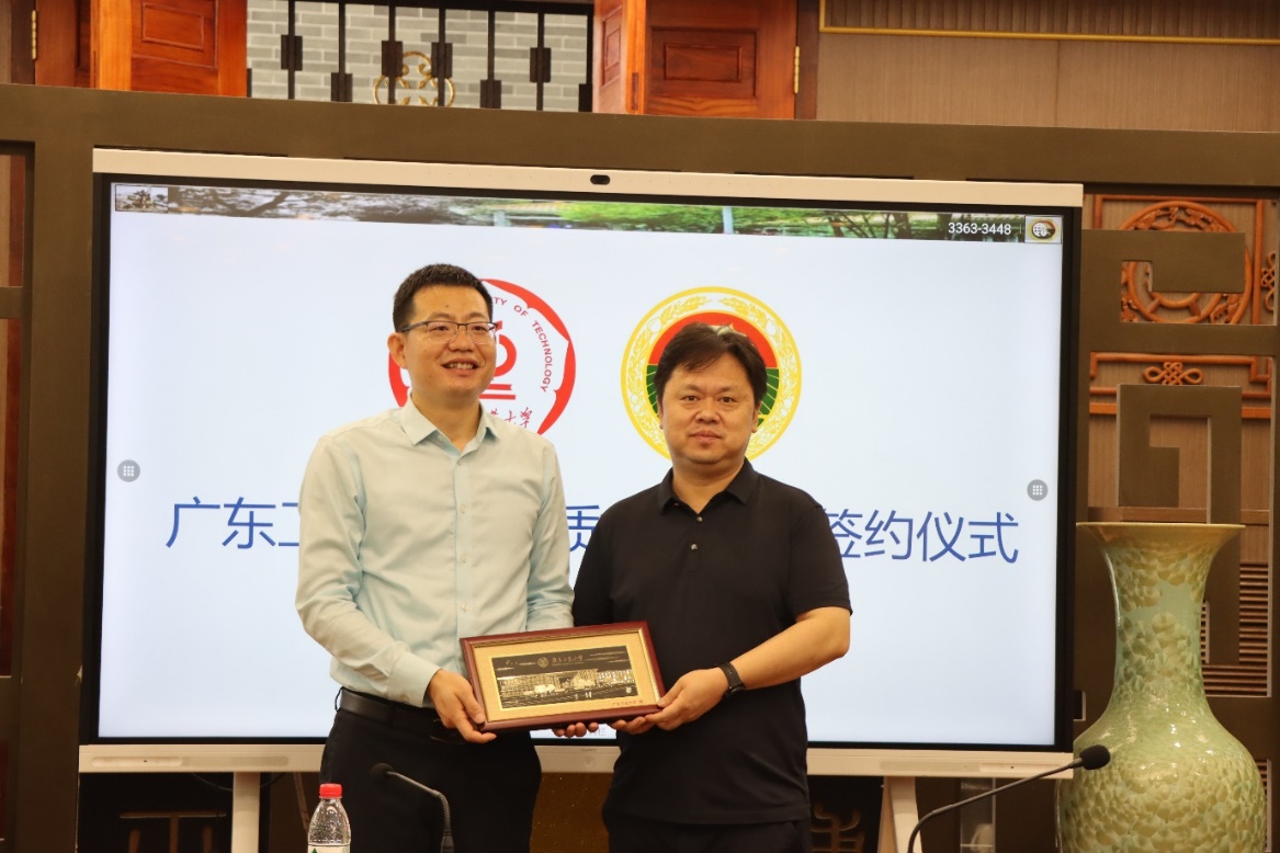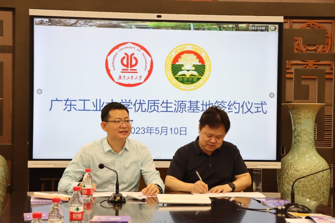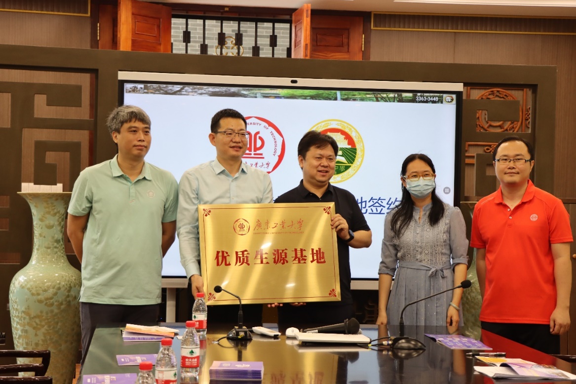 最后,双方共同签署了优质生源基地共建协议,沈彬书记代表学校向广雅中学授予“广东工业大学优质生源基地”牌匾,并赠送纪念品。
