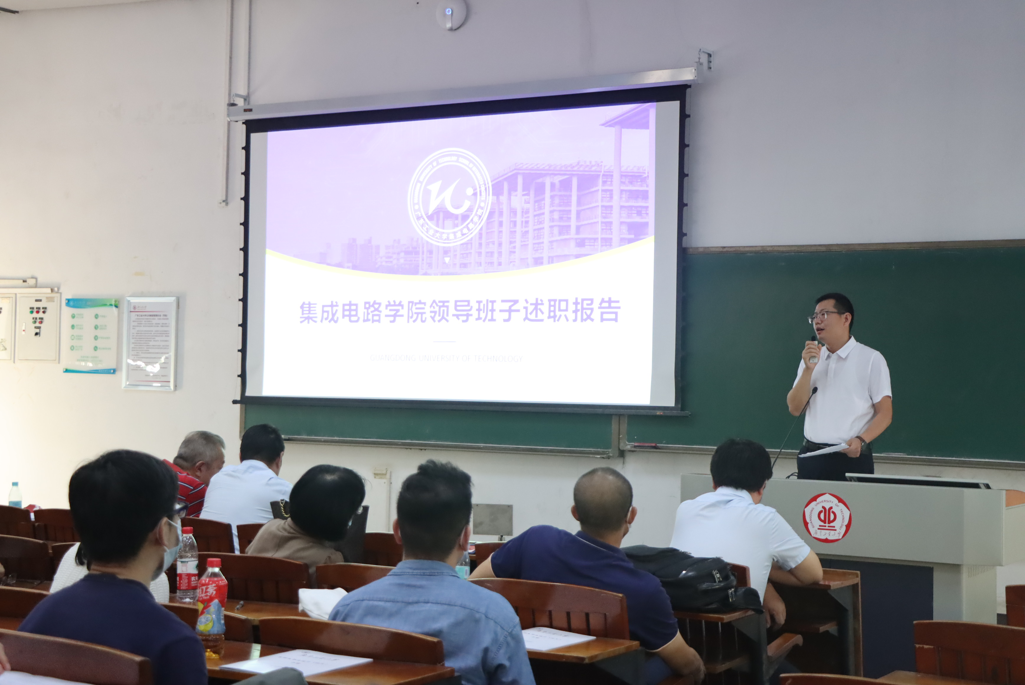 在教五102召开学院首届领导班子考核述职报告会。学院全体教职工参加了会议。大会由学院党委书记沈彬主持。