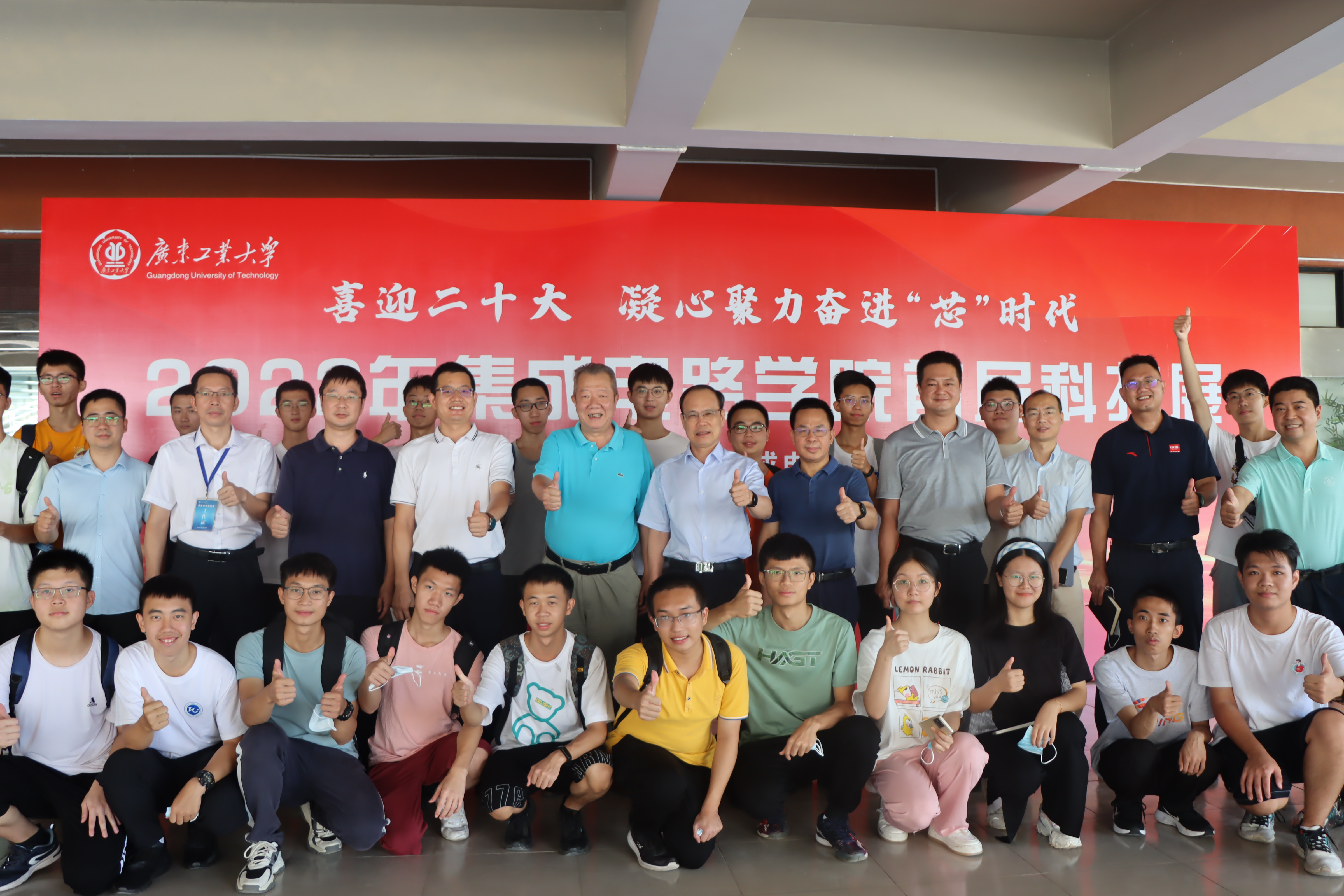 会前,邱学青参观了学院的首届科技展,并与正在参观学习的2022级新生亲切交流,寄语新生要把握机会,奋发图强,掌握真本领,争取突破技术封锁,助力中国芯片产业发展。