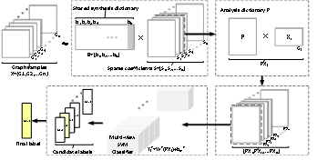 具有图结构数据的子图特征提取的效率问题日益突出。作者提出了一种新的子图特征提取体系结构——GMADL。作者搭建基于字典学习的多视角分类模型通过字典学习的方法来提取图数据的特征,以增强模型的识别性。为了提高特征提取的效率,分析词典被设计成直接生成稀疏代码的桥梁。每个稀疏码表示图的特征矩阵。通过构造多视点支持向量机分类器,将问题转化为多视点问题,利用整个视点的信息对分类模型进行预测。通过与现有方法的比较,证明了该方法的可行性和更好的分类性能,为后续将模型扩展到结点分类应用上提供了前期基础和十分有价值的参考。