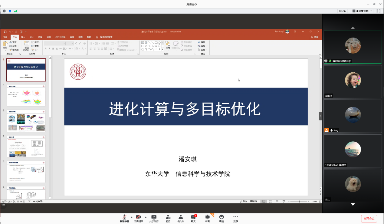 2021年1月12日晚上,广东工业大学微电子学院通过线上举行了题为《进化计算与多目标优化》报告与交流会。这次报告由潘安琪博士主持,参会人员有郭靖老师和团队部分相关方向的研究生。