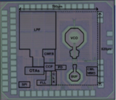 高性能时钟是射频及数模混合芯片中的关键模块。郭春炳教授团队一直致力于研发低抖动的高性能锁相环芯片(PLL)和倍频器芯片,为射频系统提供24 GHz到40 GHz的高性能时钟。团队研发的基于65 nm的欠采样锁相环芯片(SSPLL)性能达到了国际先进水平,此次入选VLSI Symposium 的论文展示了这一关键模块取得的成果。该成果在SSPLL的基础上在环路中引入了斩波技术将时钟抖动降低到极低水平(57.8 fs),这项技术将为射频芯片等系统提供优质的时钟信号源。