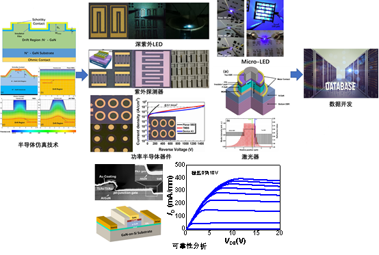 ,紧密结合半导体产业需求,致力于宽禁带半导体分立芯片与功能性集成芯片的设计、制备与应用研究,包括:功率器件、激光器、深紫外LED、Micro-LED、紫外探测器的TCAD仿真技术开发与应用和半导体材料与器件的数据库开发,旨在提高器件设计-器件制造-可靠性评估-数据库开发的全线服务能力,助力半导体器件制造领域的发展。在医工领域,建立MEMS生物传感器的仿真模拟系统,提升并优化可复用的MEMS生物传感器的生物兼容性、灵敏度、选择性、可靠性、稳定性和即时数据处理与分析能力,制造出可用于医疗、环境保护和食品安全的MEMS生物传感器。